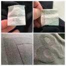 右袖に若干の日ヤケがありますが、ほぼわからないレベルだと思います。ちょうど左袖にロゴ編みがありますので、デザインぽくもあります。