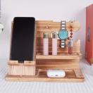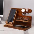 木製フォンドッキングステーション:キーホルダー・財布・時計用スタンド、木製デスクオーガナイザー、夫婦向けナイトスタンドギフトアイテム、ユニークなガジェットプント