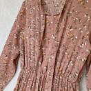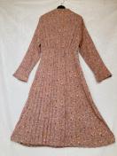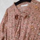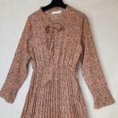 フェミニンな花柄のリボンタイ 付き長袖 ロングワンピース、フレア袖口とプリーツスカート が魅力的!