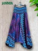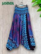 アジアンな紋様柄(羽根、花など)のサルエルパンツです。