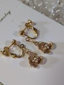 ミルクティーカラーのお花のイヤリングです。