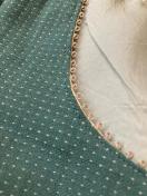 袖口、襟ぐりにもリボンと同系色の糸で加工があり生地自体も単色でなく同じ色の糸が織り込まれた感じです。(画像4 生地アップ)