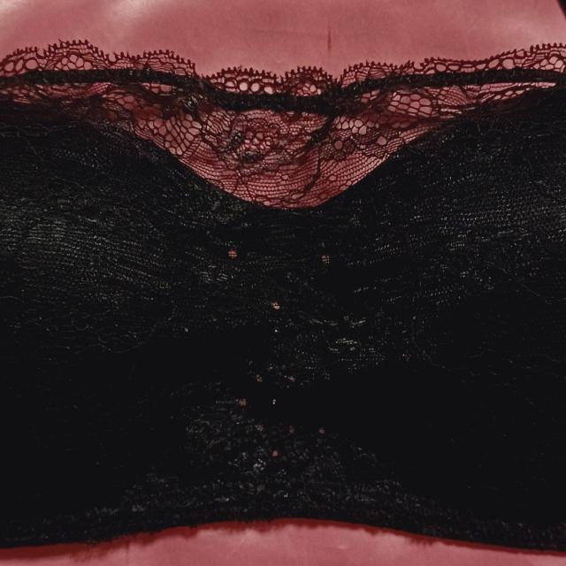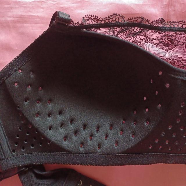 黒ブラック風通しが良い穴あきモールド胸元フロントカバーレース付ノンワイヤーブラジャー