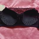 黒ブラック風通しが良い穴あきモールド胸元フロントカバーレース付ノンワイヤーブラジャー