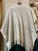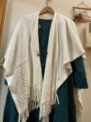 控えめな柄入りの、アイボリーのショールカーディガンです。