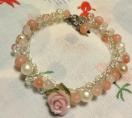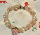 ローズクォーツ、ピンクオパール、チェリークォーツ、クリスタルオーラ、淡水パール、水晶、薔薇珊瑚、コットンパール、葉っぱビーズ、ロンデル