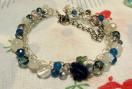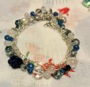 ホワイトジェード・ブルージェード・ムーンストーン・薔薇珊瑚・水晶、グレーオーラ・ガラスビーズ・葉っぱビーズ