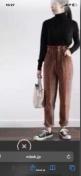 ★ギャザーウエストコーデュロイ無地ハイウエストテーパードパンツ(フルレングス)★