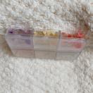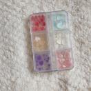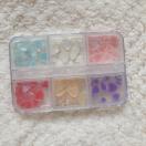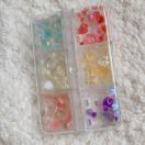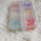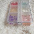 多彩なハート型のネイルパーツセット、透明ケースに収納されています。
