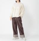 裾は足元にボリュームが出る深めのロールアップで、バランスのとりやすいシルエットに◎