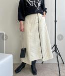 ふわっとした立体感が目を引くジャガードスカート。腰回りはスッキリ見せつつ、裾にかけてさり気なく広がるフレアシルエットで細見え効果抜群です。配色パイピングとシルバー釦がアクセントに☆ウエストは後ろゴムなので、履き心地も◎------------------------------