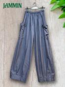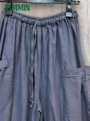 ウエストにゴムとヒモ入りで、ベース色はグレーです。