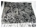 【色味】 ベースはシックな**ブラック(黒)です。柄はホワイト(白)**で、ペイズリー柄のようなクラシックな模様が施されています。モノトーンで合わせやすく使いやすいお色味です。