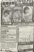 爆乳の「榎原依那」さんのハミ乳ビキニ姿3種のオリジナルQUOカードが必ず購入出来る全プレ応募用紙です。爆乳でわかるとおり依那ちゃんは今後の活躍が期待大のアイドルですから、このビキニ水着姿のクオカードはプレミアム化は必至です。ただ、全プレですが、雑誌の応募用紙がなければ購入できませんし、しかも1枚の応募用紙で1種類しか購入出来ないので、複数枚欲しい方にとっては、雑誌を複数冊買うよりお買い得だと思います。申し込み期限は11月11日消印までとなっておりますので、注意してください。その他、細かいことは、各人、店頭で発売している雑誌で確認してください。なお、出品商品は、応募用紙のみとなります。締切日時