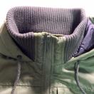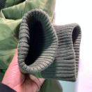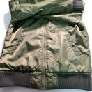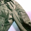 フード付きのオリーブグリーンMA-1ジャケット、Lサイズ、ナイロン系素材で耐久性があります。