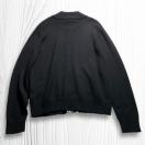 ジップアップデザインのブラックニット、リブ編みの袖口とスラッシュポケット付き。