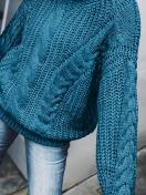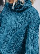 レディース ターコイズブルー ケーブルニットセーター - エレガントなハイネック 冬用セーター 長袖 秋冬向け コージーニット リッチなティールカラー カジュアルからフォーマルまで使える (パッドなし)