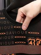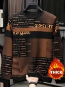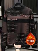 メンズの厚手フリース裏地付きクルーネックスウェットシャツ - "サベージ"グラフィックプリント付きの快適な長袖プルオーバー、秋にぴったりのカジュアルで快適なデザイン、白い文字の黒色、ポリエステル混紡、カジュアルな服装に最適、セーターとフーディ、ニット、メンズジャンパーとセーター、メンズニットウェア、ゴルフウェア、メンズゴルフシャツ、メンズゴルフウェア