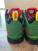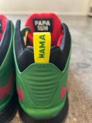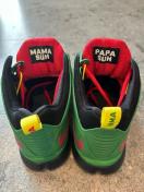 鮮やかなグリーンベースにレッド×イエローのアクセント、ヒールには「MAMA SUH」「PAPA SUH」の刺繍が入り、一般発売されなかった超限定スニーカーです。