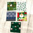10cm角の生地5枚と、赤のタータンチェックの生地のセットです