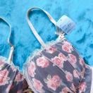 薔薇柄×オーガンジーレースブラジャー&ショーツセット