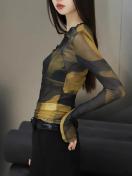 レディース シアー&セミシアー オールオーバープリント インスパイアード シボリ タイダイ Tシャツ - ロングスリーブ ブラウス ラウンドネック ソフトで通気性の良い素材 カジュアル・パーティー・日常着に最適 オールシーズン ホワイト/イエロー/グリーン/ブラック/ベージュ トップ