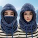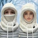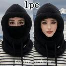 冬用ふわふわ防寒フェイスマスク帽子 - 伸縮性のあるドローストリングクロージャー、軽量で暖かいサイクリング・スキー・アウトドアスポーツプルオーバー、無地カラーフリース風防耳保護付きユニセックスキャップ、4色展開