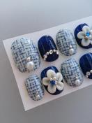 ベース★ツイード風の柄+ネイビーに細かいシルバーラメ