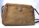 イタリアの高級ブランド「BORBONESE(ボルボネーゼ)」の斜めがけショルダーバッグです。ブランドを象徴するうずら柄(または「ムーン柄」)の型押しが施された上質な羊革が使用されており、高級感と個性を兼ね備えたデザインが魅力です。