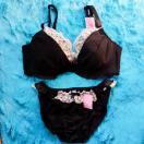 女性ファッション インナー/部屋着 ブラジャー&ショーツセット Eカップ以上セット ブラック
