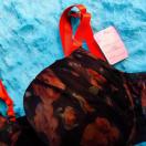 ローズワッペン付薔薇柄ブラジャー&ショーツセット