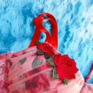 ローズワッペン付薔薇柄ブラジャー&ショーツセット