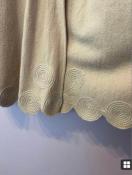 襟の部分、裾のスカラップ部分にあまり目立ちませんが変色部分があります。(10、11、12枚目の写真でご確認ください)※着用していただくとお色がベージュなので、そんなに気にならないと思います。