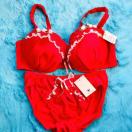 女性ファッション インナー/部屋着 ブラジャー&ショーツセット Eカップ以上セット レッド