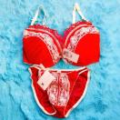女性ファッション インナー/部屋着 ブラジャー&ショーツセット Eカップ以上セット レッド