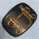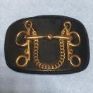 ホースビットレザーバックルで、Hと馬具モチーフのゴールドメタルが輝いています。