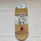 昭和レトロな牛さん印のカフェオレ、いちごオレ、フルーツオレデザインのショート丈、スニーカーソックスです。