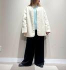ハイネックやタートルネックのトップスとも好相性なノーカラーデザインに仕立てたボアジャケット。