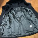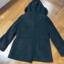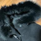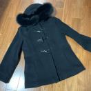 ストロベリーフィールドのファー付きフードのブラックダッフルコート。