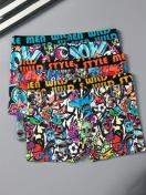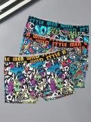 3点セット メンズボクサーブリーフ ワイルド&クレイジーグラフィックデザイン 弾性快適フィット 通気性シェア生地 カートゥーンスカル&サッカープリント下着 カジュアル&スポーツウェア スポーティ下着 遊び心デザイン ミディアム弾性