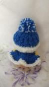 大きなポンポン帽子とフリルタップりワンピースのひよちゃんです。