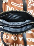 大きめの間口で真ん中に仕切りが有り両方ともファスナー付きです。裏側にも小さめなファスナー付きポケットが有ります。