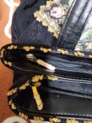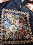 黒地に艶やかなゴブラン織の花柄が施されたバックです。