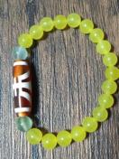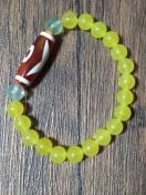 メノウの貴人天珠に、8ミリの着色イエロージェイドとプレナイトを合わせました。
