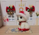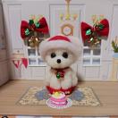 サンタ帽子被った可愛いマルチーズ ケーキ付き 羊毛フェルト