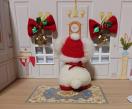 サンタ帽子をかぶった羊毛フェルトのマルチーズ クリスマスデコレーションにぴったりです。