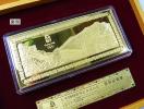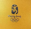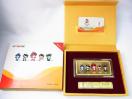 北京2008オリンピックの公式記念金プレート。五輪マスコットデザイン。