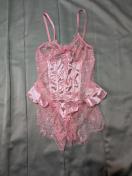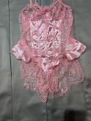 W1092 最高級品 ピンクのセクシーなレースフリルのボディースーツ L