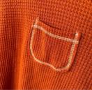 ワッフルのような質感で、透かし編みになっていますので、ロンTの上に重ね着しても良いかと思います。