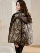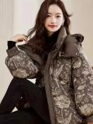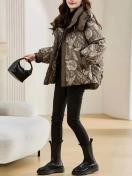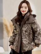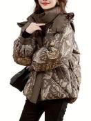 レディース プチサイズ ウィンタージャケット - 厚手パッド入りコート アシンメトリーヘム&フロント/バック アシンメトリー ショート丈 プチサイズ向け フローラルプリント (ブラウン/ベージュ) カジュアルエレガント アウター 手洗い可能 防寒ブレザー